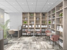通常、コワーキングスペースはオープンなレイアウトで、個別のデスクやオフィス、会議室などの設備を共有して利用できます。