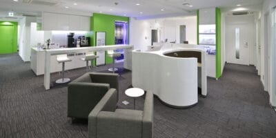 通常、コワーキングスペースはオープンなレイアウトで、個別のデスクやオフィス、会議室などの設備を共有して利用できます。