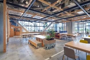 通常、コワーキングスペースはオープンなレイアウトで、個別のデスクやオフィス、会議室などの設備を共有して利用できます。