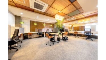 通常、コワーキングスペースはオープンなレイアウトで、個別のデスクやオフィス、会議室などの設備を共有して利用できます。