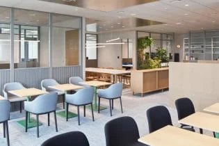 通常、コワーキングスペースはオープンなレイアウトで、個別のデスクやオフィス、会議室などの設備を共有して利用できます。