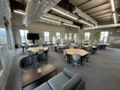 通常、コワーキングスペースはオープンなレイアウトで、個別のデスクやオフィス、会議室などの設備を共有して利用できます。