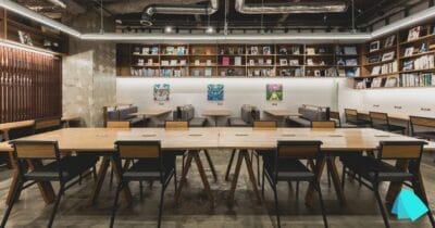 37席と広々としたカフェスペースでは、書籍を自由に読むこともでき、リラックスした雰囲気の中で集中して作業ができます。