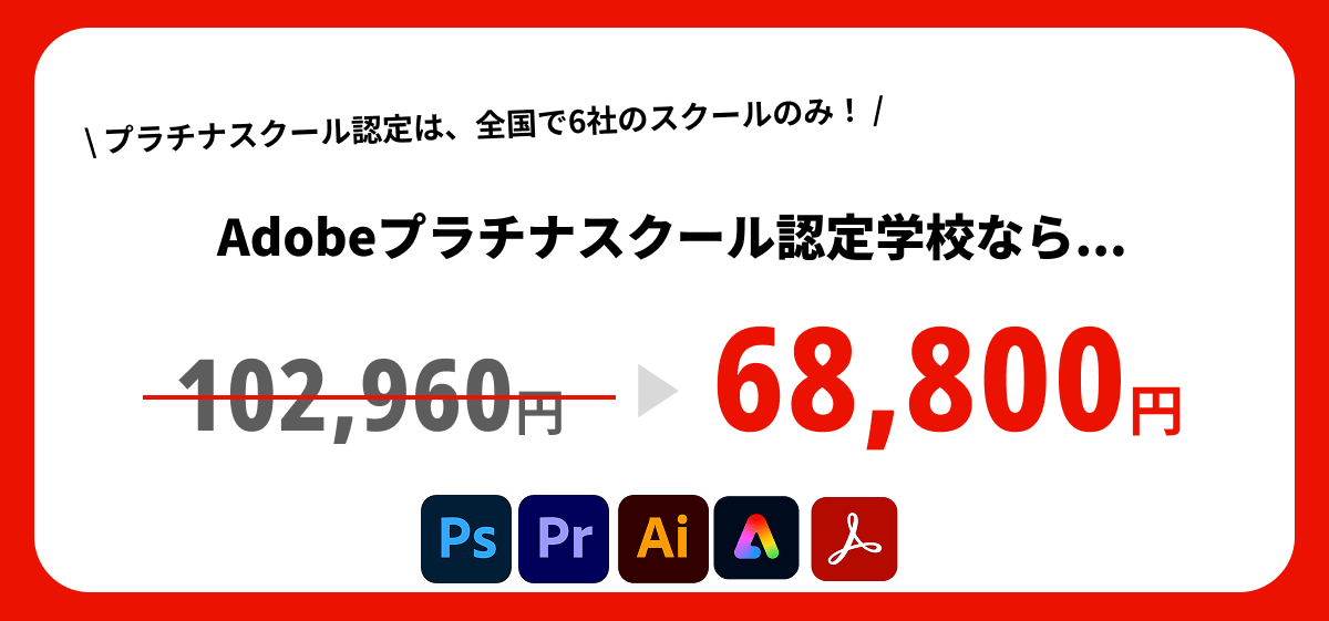 デジハリは、Adobeプラチナスクール認定学校なので、Adobe Creative Cloudをお得に購入できます。